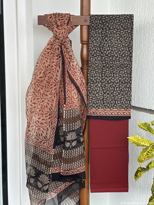 RED BLACK AJRAKH SILK TOTE BAG