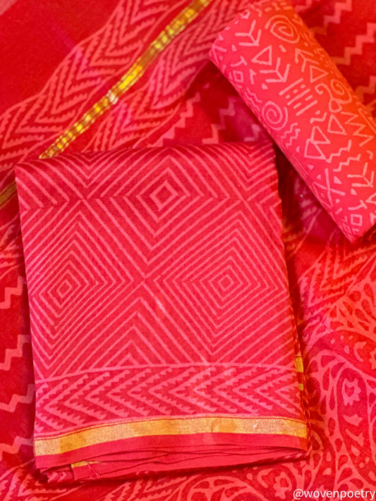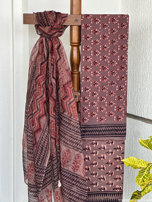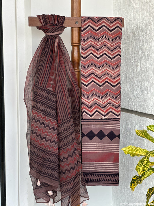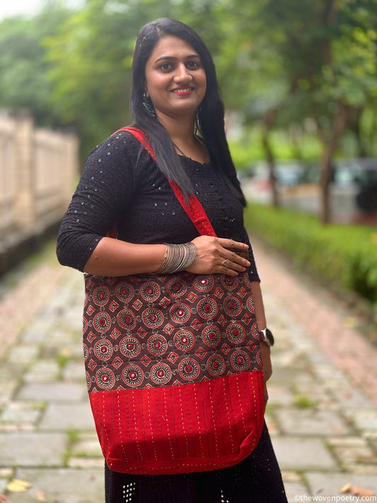 BROWN MAROON AJRAKH SILK TOTE BAG