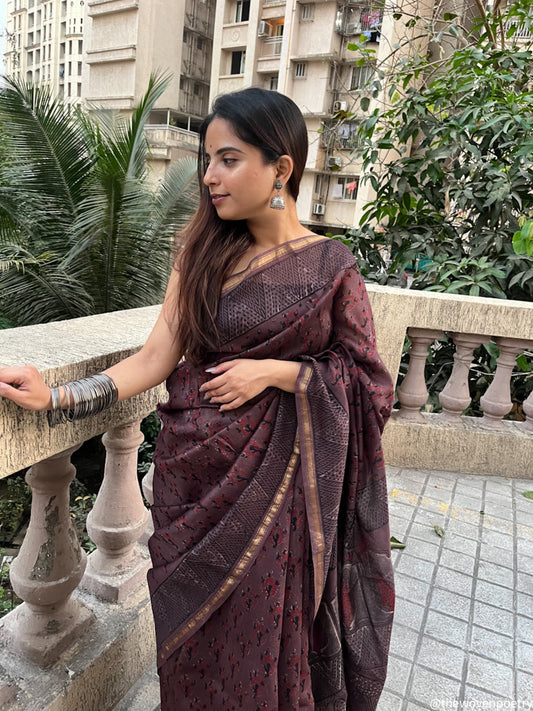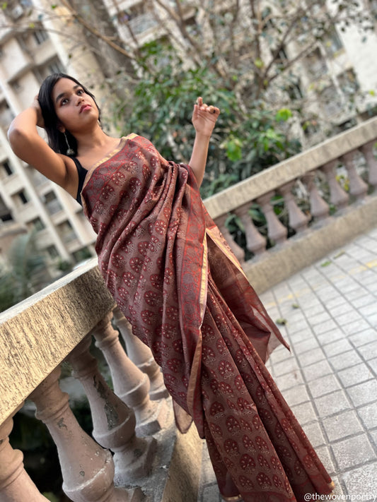 Explore Maheshwari sarees by Woven Poetry, featuring a curated range of handcrafted sarees in silk, silk cotton, and cotton blends. Known for their lightweight feel, distinctive borders, and elegant drape, Maheshwari sarees celebrate Indian handloom traditions with timeless weaves and select hand block printed designs, perfect for festive occasions, workwear, and everyday elegance.