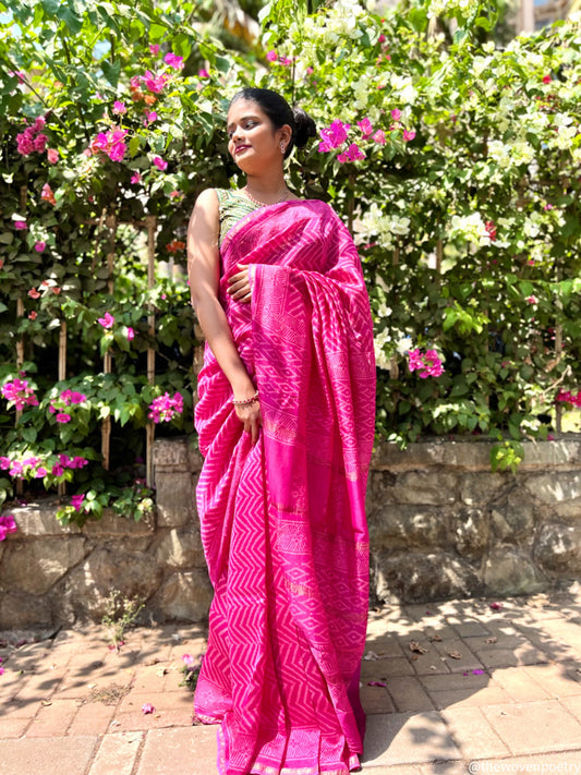 Explore Maheshwari sarees by Woven Poetry, featuring a curated range of handcrafted sarees in silk, silk cotton, and cotton blends. Known for their lightweight feel, distinctive borders, and elegant drape, Maheshwari sarees celebrate Indian handloom traditions with timeless weaves and select hand block printed designs, perfect for festive occasions, workwear, and everyday elegance.