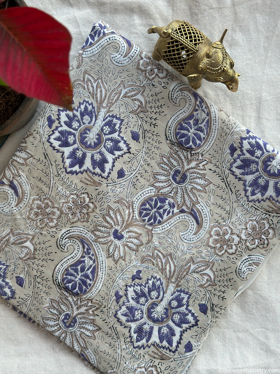 A classic handblock cotton fabric featuring timeless floral motifs crafted using traditional Sanganeri techniques. This breathable cotton fabric by Woven Poetry makes it ideal for kurta sets, dresses, and everyday ethnic wear.