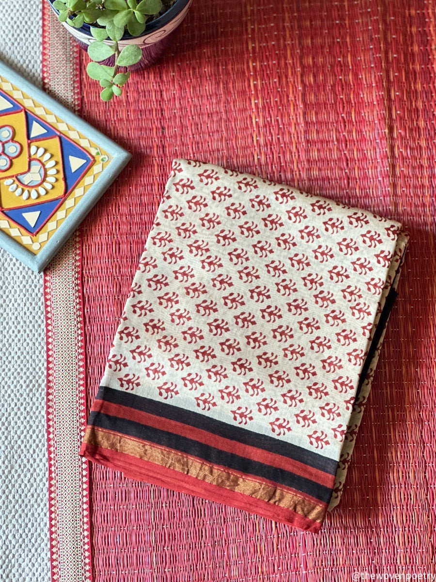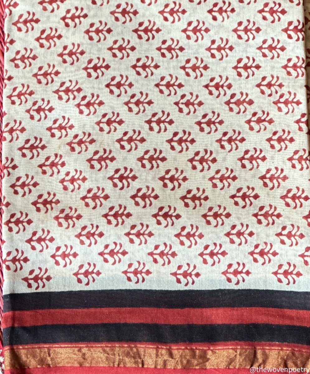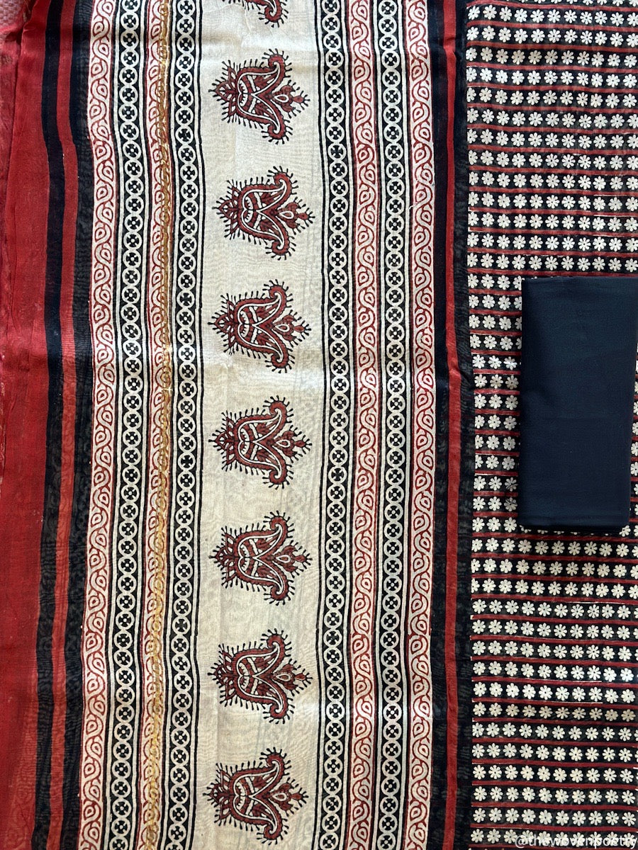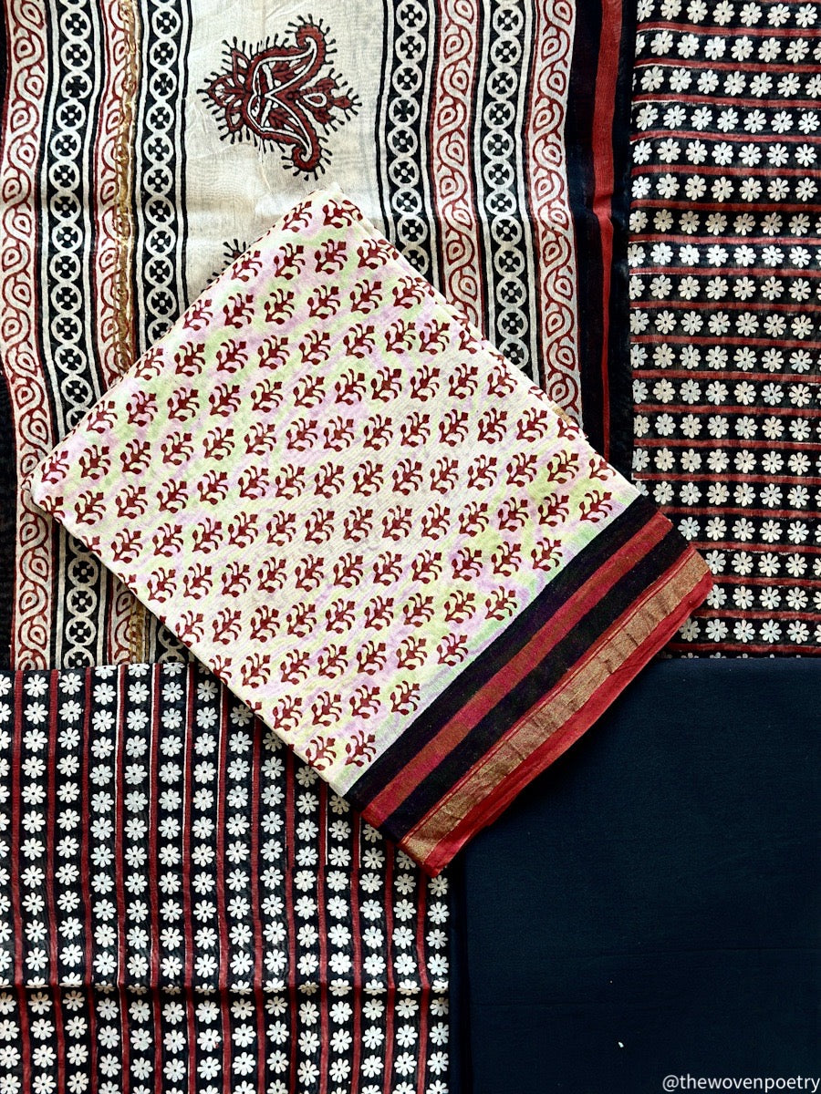 Chanderi Silk Cotton Suit fabric featuring Hand Block Printing and crafted with Eco-Friendly Dyes.