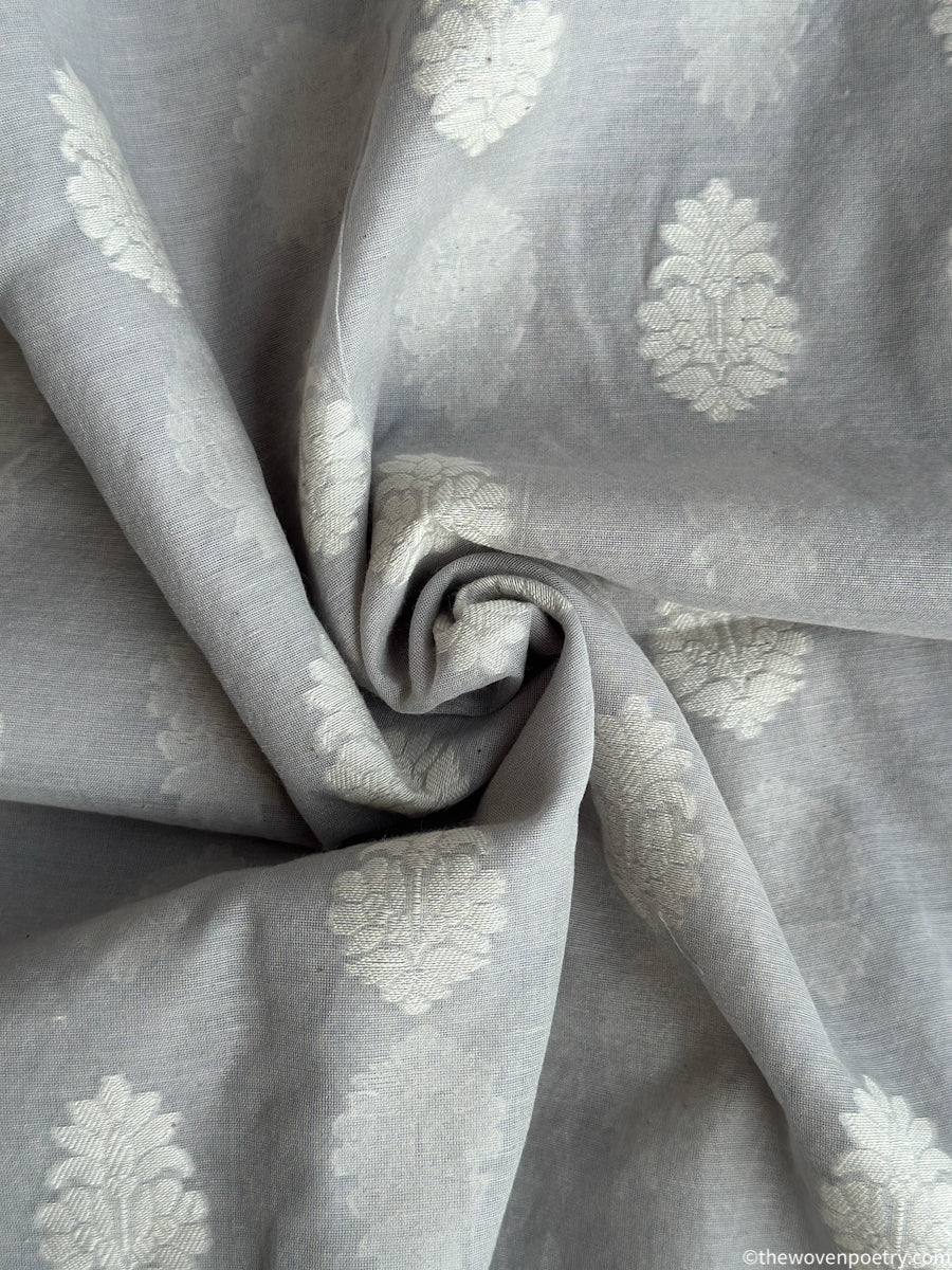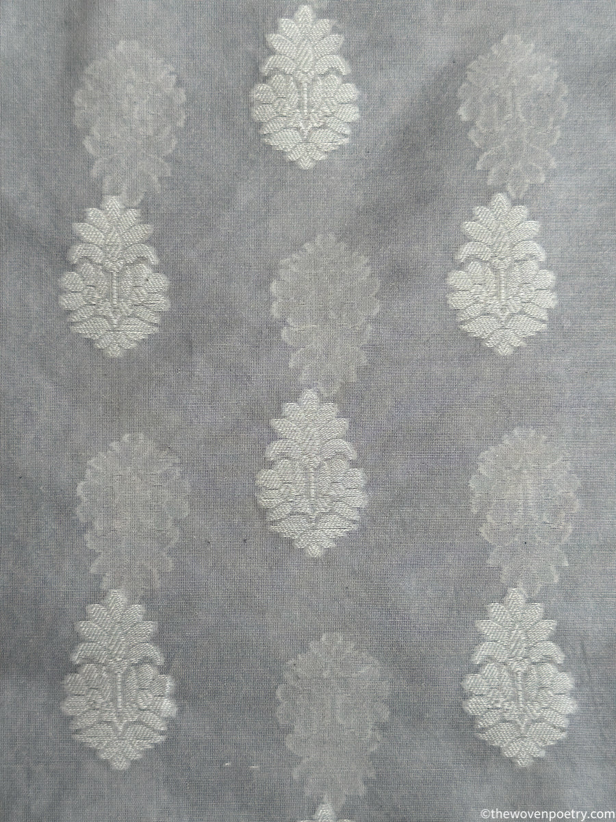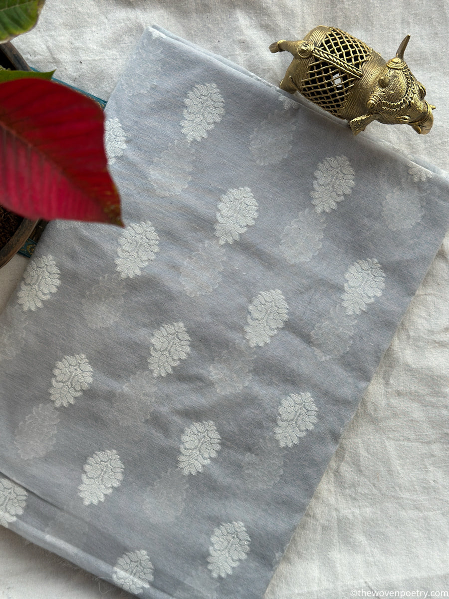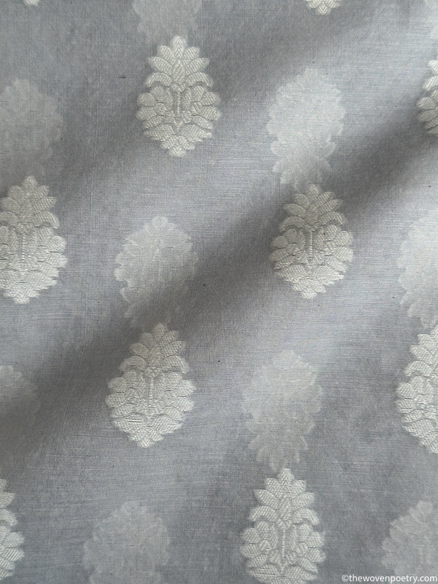 Rooted in Banaras’s weaving legacy, this pure handwoven cutwork buti cotton Banarasi fabric celebrates refined craftsmanship and airy elegance. Woven in cotton and finished with delicate cutwork buti, it feels light, breathable, and graceful for everyday ethnic wear. Each length carries subtle handwoven nuances that make it uniquely yours.