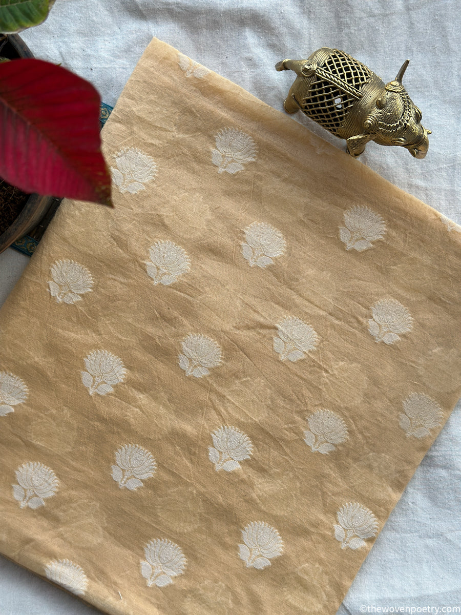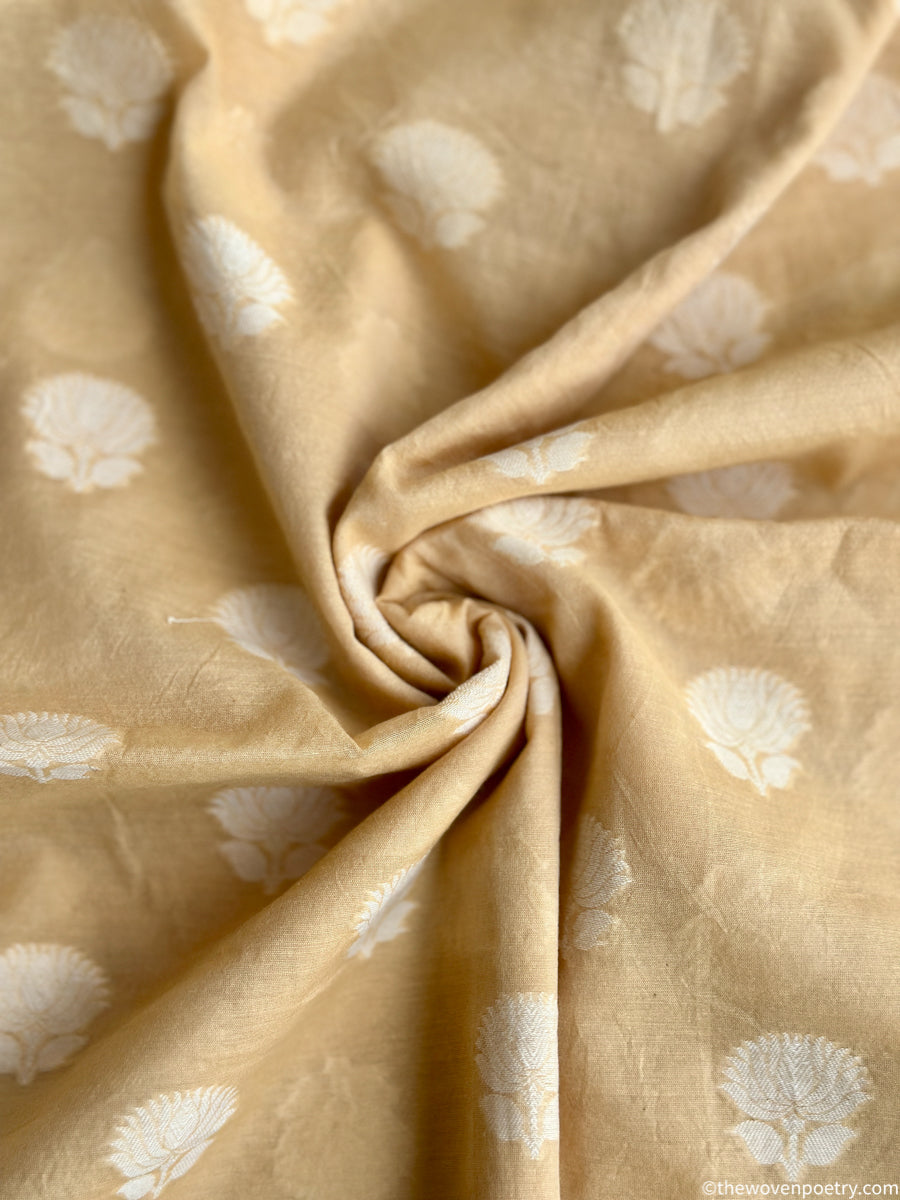 Handwoven in Banaras, this pure handwoven cutwork buti cotton fabric brings together breathable cotton and refined detailing. Light and graceful, it suits relaxed silhouettes and everyday ethnic wear.