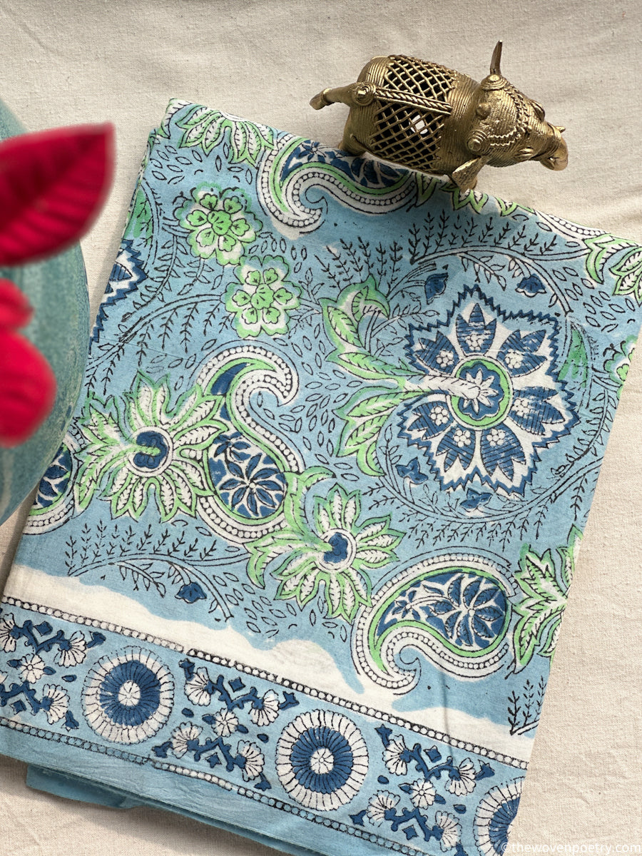A classic handblock cotton fabric featuring timeless floral motifs crafted using traditional Sanganeri techniques. This breathable cotton fabric by Woven Poetry makes it ideal for kurta sets, dresses, and everyday ethnic wear.