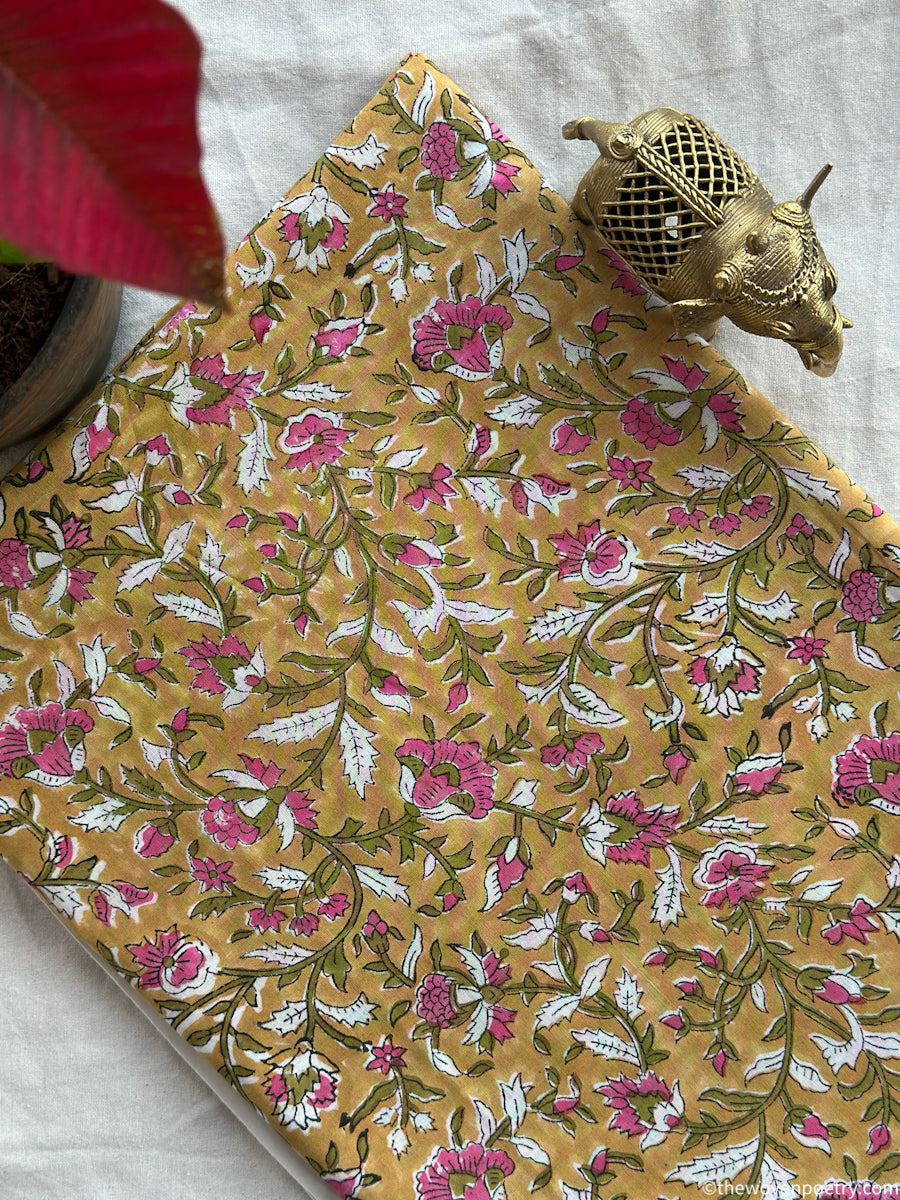 A classic handblock cotton fabric featuring timeless floral motifs crafted using traditional Sanganeri techniques. This breathable cotton fabric by Woven Poetry makes it ideal for kurta sets, dresses, and everyday ethnic wear.